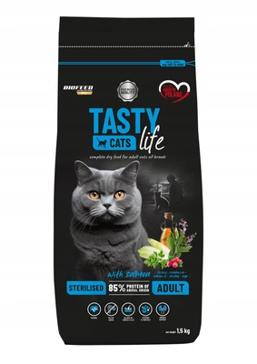 TASTY LIFE CATS STERILISED ADULT Z ŁOSOSIEM 1,5KG - Pełnoporcjowa karma dla dorosłych, sterylizowanych kotów