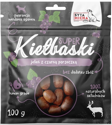 SYTA MICHA kiełbaski z jeleniem i czarną porzeczką 100g