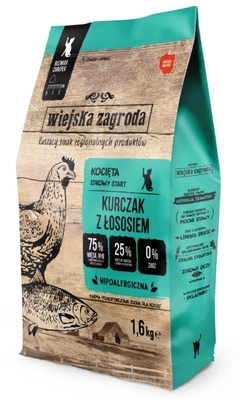 Wiejska Zagroda Kurczak z łososiem 1,6 kg – karma sucha dla kociąt