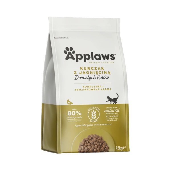 Applaws Adult Chicken & Lamb 7,5 kg to idealny wybór dla opiekunów, którzy chcą zapewnić kotu naturalną, wysokomięsną i lekkostrawną dietę każdego dnia.