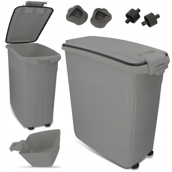 Duża pojemność: Z pojemnością 54 litrów, ten pojemnik pomieści dużą ilość suchego pokarmu, co sprawia, że jest idealnym wyborem dla właścicieli kilku zwierząt lub osób, które preferują zakupy karmy w większych ilościach.