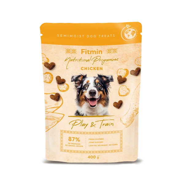 FITMIN Dog Semimoist Play and Train 400g – półmiękkie przysmaki treningowe dla psa z kurczakiem