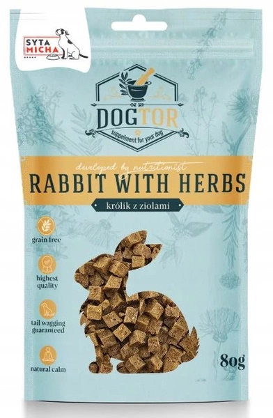 - SYTA MICHA Dogtor Uspokajające przysmaki dla psa królik z ziołami 80g