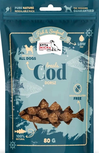 - Syta Micha Fish & Seafood Dorsz 80 g – Naturalny Przysmak z Ryby dla Psa