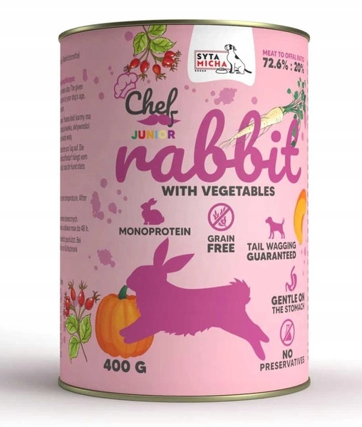 - SYTA MICHA karma mokra CHEF Królik z warzywami JUNIOR 400g