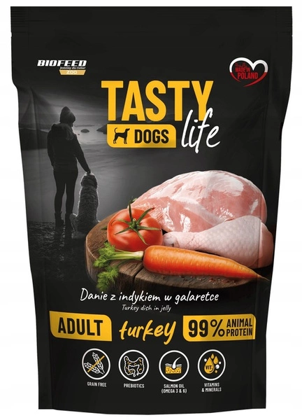 - TASTY DOGS LIFE mokra karma dla psa z indykiem w galaretce – saszetka 500 g