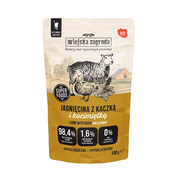 - Wiejska Zagroda Jagnięcina z kaczką i kocimiętką (dorosły) 100g Karma mokra dla kota